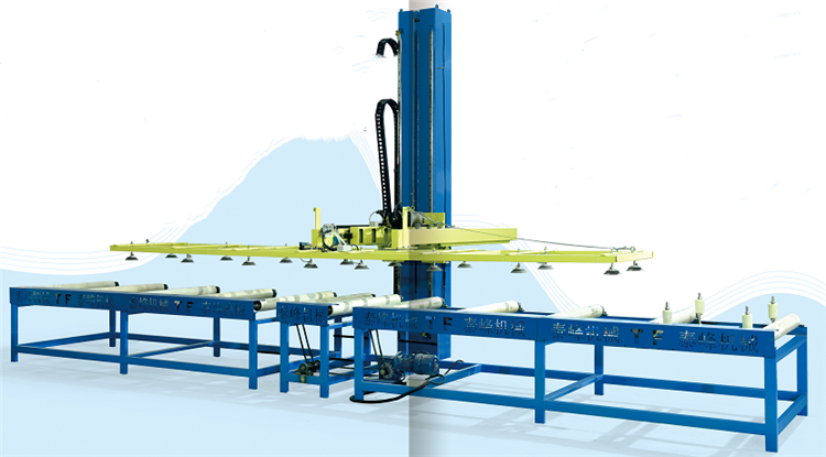 夹芯板垛码可适用:净化板,岩棉保温板,彩钢板,大波瓦板,本机采用全伺服运动控制系统,PLC编程自动化控制,人机操作界面,真空吸盘式抓起堆垛,根据客人要求尺寸可自动计数堆垛不同长度规格板材;机器输送长度8米,可直接与夹芯板主机连接,实现成品板料自动堆垛,减少人工搬运成本。