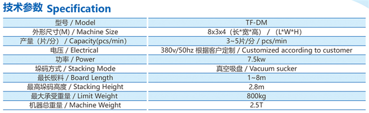 净化板堆垛机工作原理:主机切割成品后,自动传送到垛码机指定位置,感应到板料到位,垛码吸盘启动,真空吸盘抓起板料转移指定位置上实现堆垛起来,堆垛高度机器可自实应调节,堆垛平正,堆垛成型完后机器会自动报警提示完成。