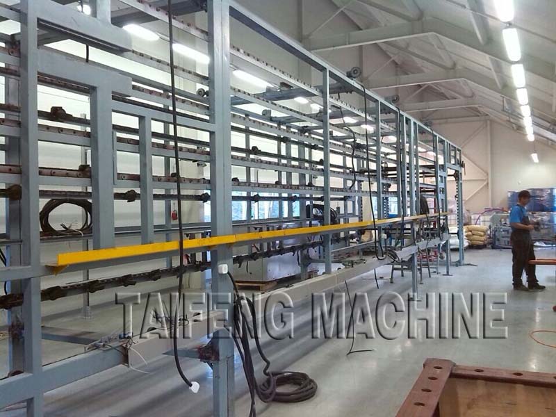 (6)、塑化成型后,进入聚氨酯(PU)料槽进行浸渍后,加热烘干;