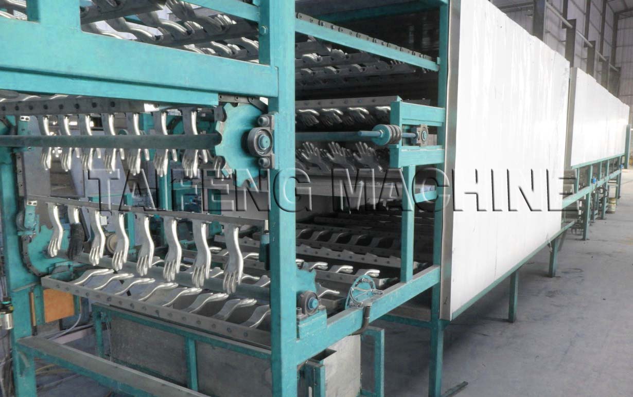 (8)、再经脱模即得成品塑胶手套。